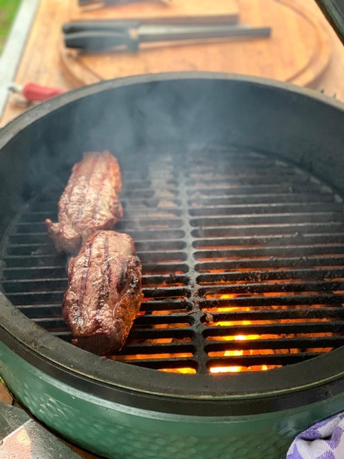 Bij dit vlees past een stoere thee. Mijn voorkeur gaat uit naar een zwarte thee met body zoals een Ceylon of Assam. Je zou het misschien niet direct verwachten maar het vlees maakt het pittige van de thee iets minder waardoor de thee zachter smaakt. En de thee zorgt ervoor dat het vlees intenser en hartiger smaakt.